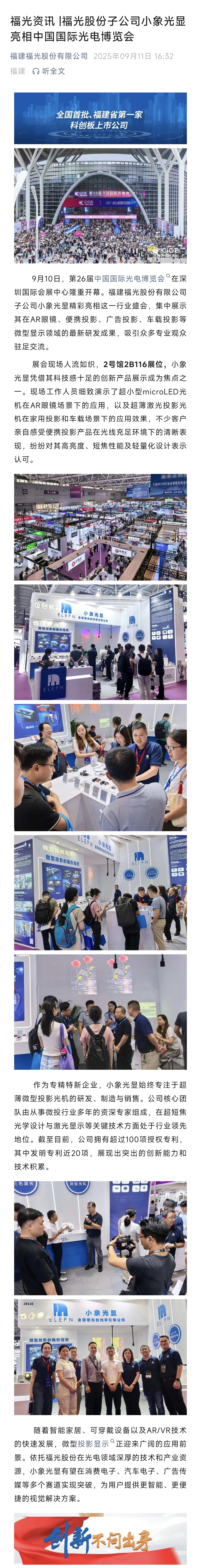 當前位置:新聞中心->福光股份子公司小象光顯亮相中國國際光電博覽會