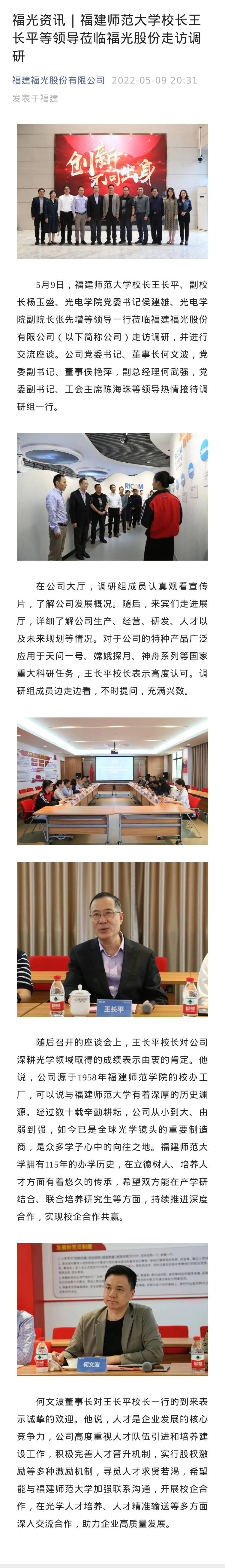 | 新聞中心 | 當(dāng)前位置:新聞中心->福建師范大學(xué)校長(zhǎng)王長(zhǎng)平等領(lǐng)導(dǎo)蒞臨福光股份走訪調(diào)研 |