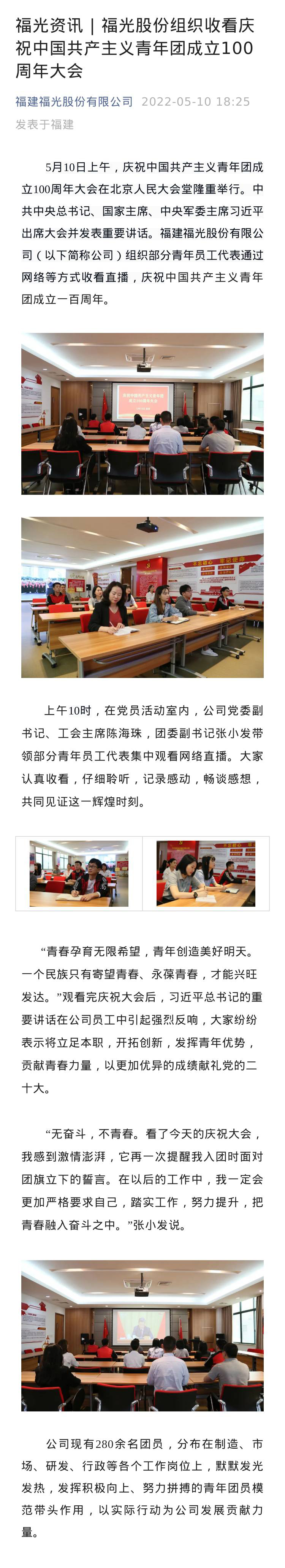 | 新聞中心 | 當(dāng)前位置:新聞中心->福光股份組織收看慶祝中國(guó)共產(chǎn)主義青年團(tuán)成立100周年大會(huì) |