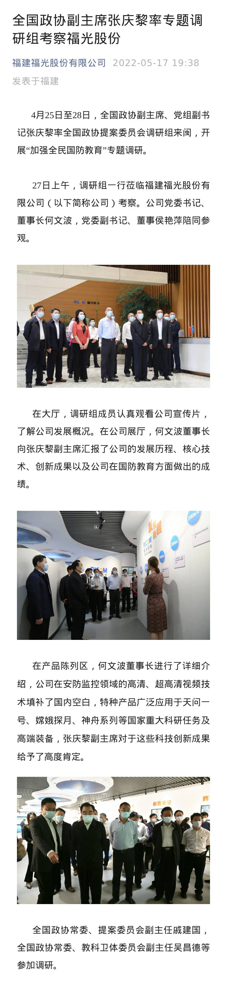 當前位置:新聞中心->全國政協副主席張慶黎率專題調研組考察福光股份