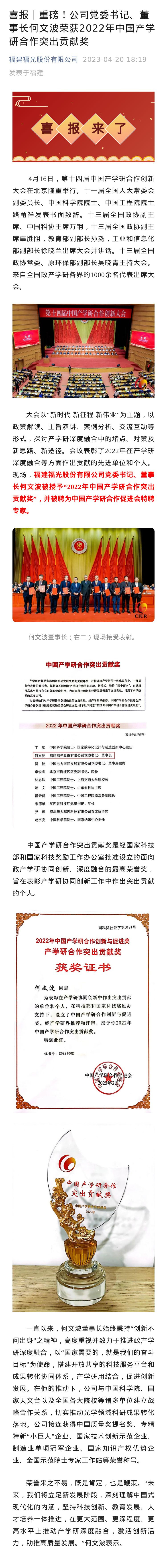 當前位置:新聞中心->重磅!公司黨委書記、董事長何文波榮獲2022年中國產學研合作突出貢獻獎