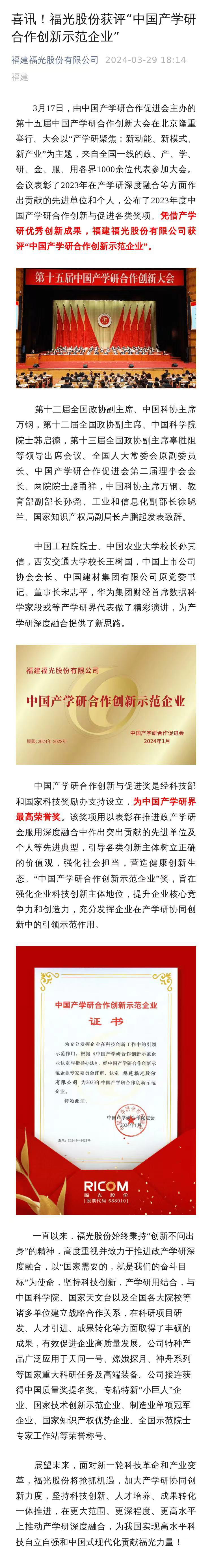 | 新聞中心 | 當(dāng)前位置:新聞中心->喜訊!福光股份獲評(píng)“中國產(chǎn)學(xué)研合作創(chuàng)新示范企業(yè)” |